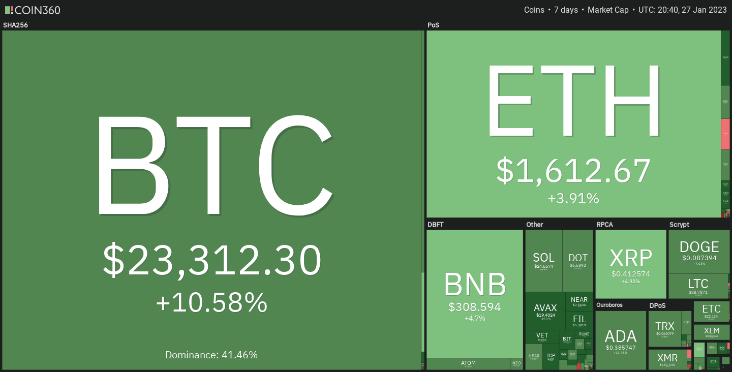 ₿ In the crypto markets, the fun continues with another cracker of a week. The overall marketcap of the space has remained above 1 trillion, undoing the damage from FTX collapse in November. Also Bitcoin dominance up, suggesting many believe BTC to be the safer bet. (click to expand images below)