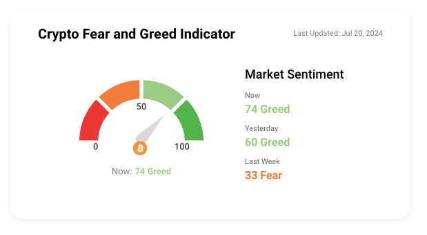 🎭 Crypto Fear and Greed Index is based on volatility, social media sentiments, surveys, market momentum, and a few other bits and pieces.