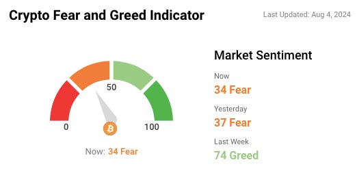 ๐ญ Crypto Fear and Greed Index is based on volatility, social media sentiments, surveys, market momentum, and a few other bits and pieces.