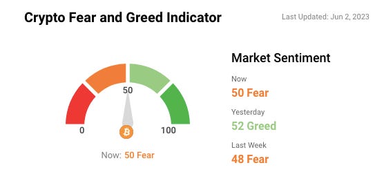 🎭 Sentiment levels are still teetering on the edge of fear & greed as markets decide if the bear market is over.