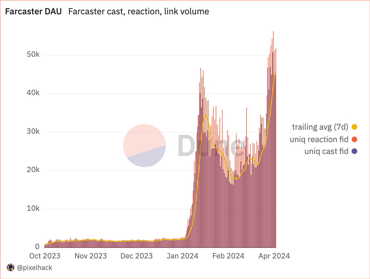 📲 Farcaster's parent company, Merkle Manufactory, is on the brink of achieving unicorn status with a valuation surpassing $1 billion, thanks to a new funding round led by Paradigm. Founded in 2020 by former Coinbase executives, Merkle's flagship product is the social media app Warpcast, operating atop the decentralised Farcaster network. The recent surge in user activity on Farcaster, fueled by the introduction of Frames allowing in-app functionality, underscores the growing appeal of decentralized social media platforms, despite challenges in user retention.