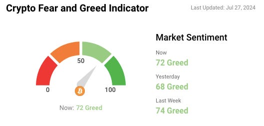 🎭 Crypto Fear and Greed Index is based on volatility, social media sentiments, surveys, market momentum, and a few other bits and pieces.