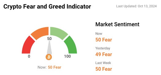 🎭 Crypto Fear and Greed Index is based on volatility, social media sentiments, surveys, market momentum, and a few other bits and pieces.
