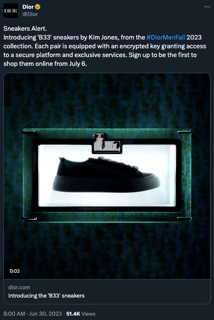 ๐ Dior jumped into Web3 with a line of sneakers that come with NFTs that unlock online services and experiences. They donโt refer to them as NFTs of course, which is totally fine (the term still has confusing connotations).