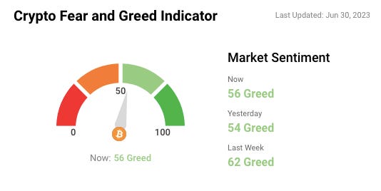๐ญ Sentiment levels still in mild greed with this recent market pump.