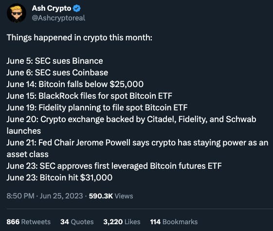 ๐ Market update: Another strong week for Crypto, and institutions are loading up.