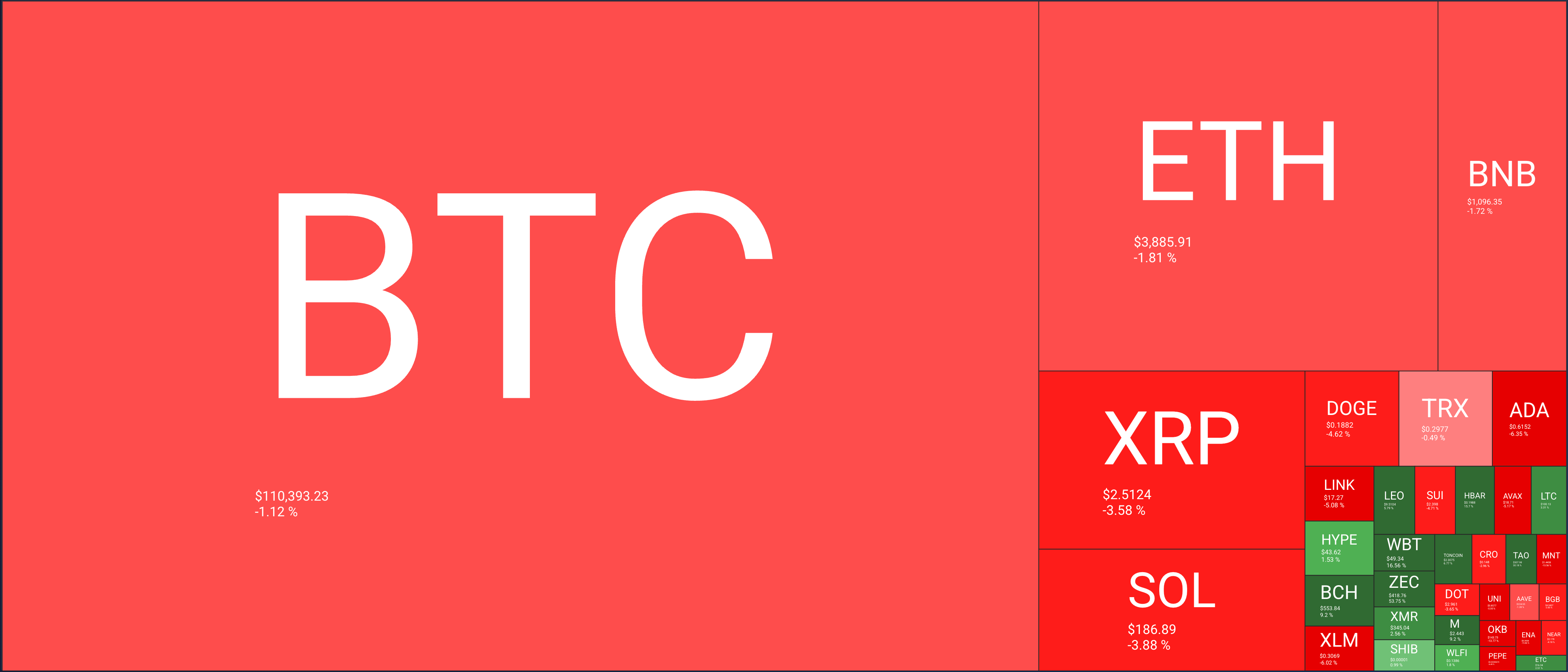 🔥🗺️Heat map shows the 7 day change in price (red down, green up) and block size is market cap.