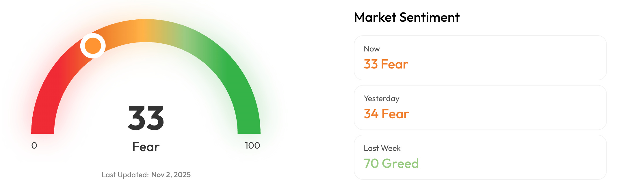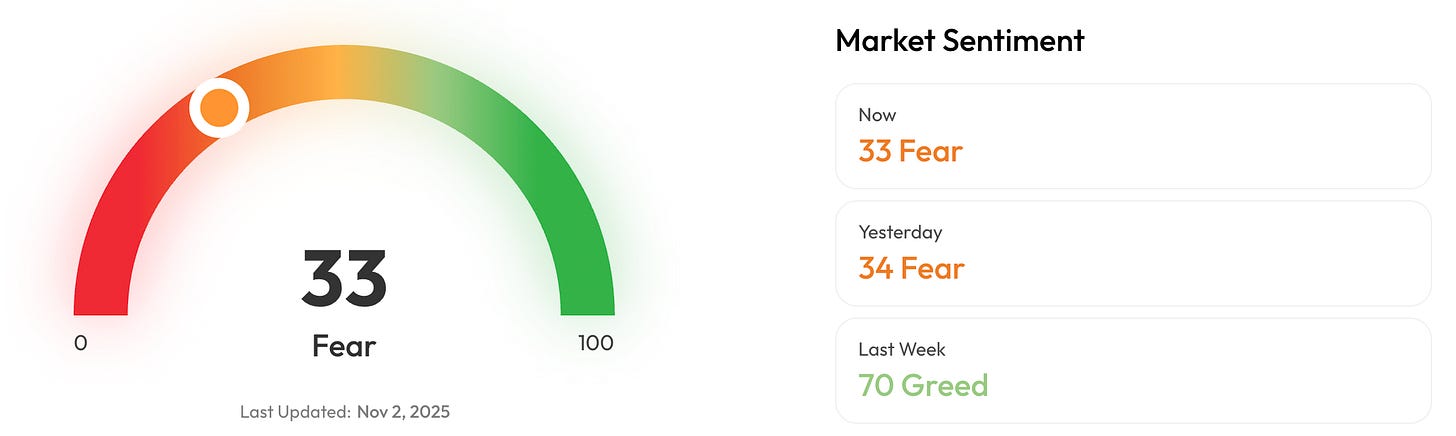🎭 Crypto Fear and Greed Index is an insight into the underlying psychological forces that drive the market’s volatility. Sentiment reveals itself across various channels—from social media activity to Google search trends—and when analysed alongside market data, these signals provide meaningful insight into the prevailing investment climate. The Fear & Greed Index aggregates these inputs, assigning weighted value to each, and distils them into a single, unified score.