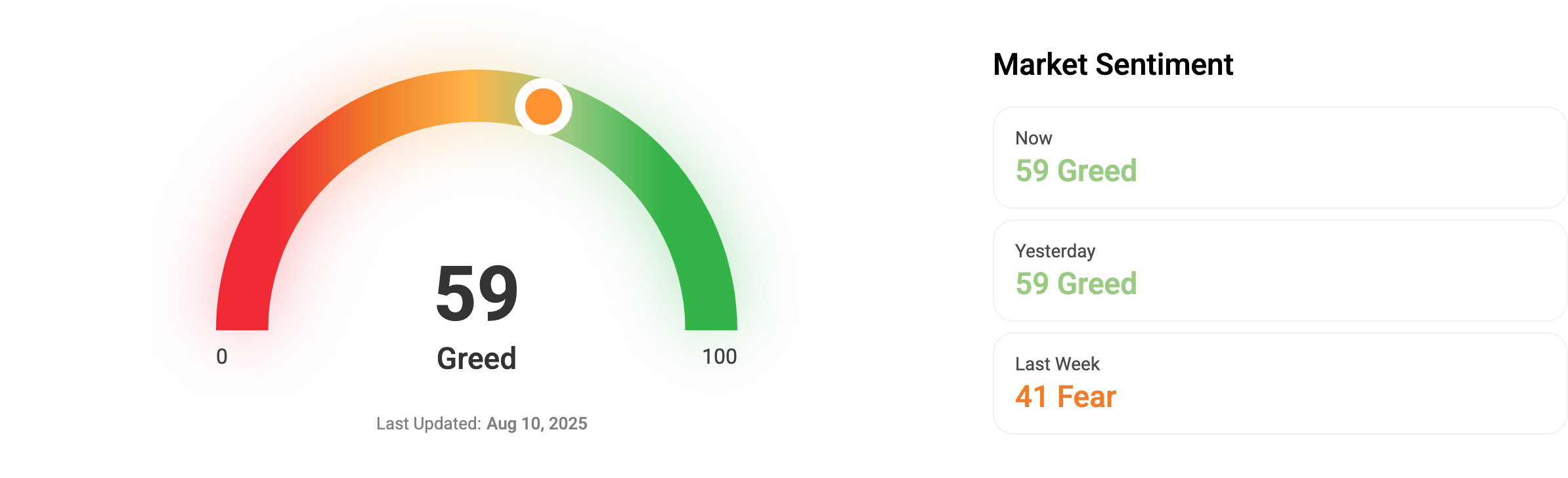 🎭 Crypto Fear and Greed Index is an insight into the underlying psychological forces that drives the market’s volatility. Sentiment reveals itself across various channels—from social media activity to Google search trends—and when analysed alongside market data, these signals provide meaningful insight into the prevailing investment climate. The Fear & Greed Index aggregates these inputs, assigning weighted value to each, and distils them into a single, unified score.