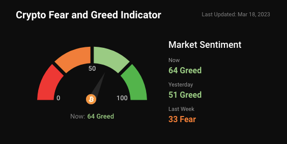 🤔 Sentiment levels, which are reflective of our human emotional (over)reaction to market news, are back in the greed zone given the positive price action.