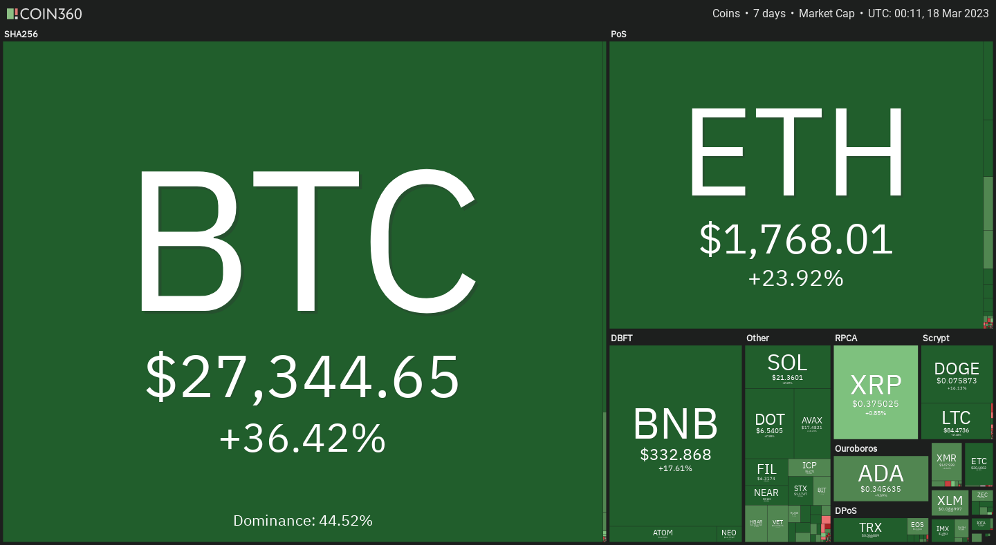 Market update: Crypto surges with BTC posting its best week since January (+35%. )
