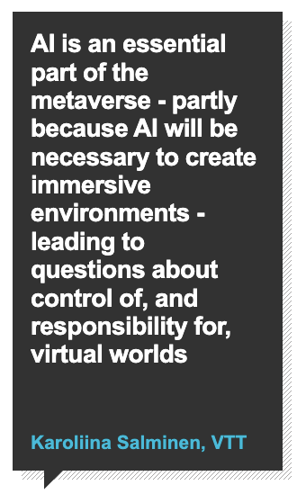 In the Metaverse, AI will be critical for creating intelligent virtual environments and avatars that can understand and respond to users with human-like cognition and natural interactions: