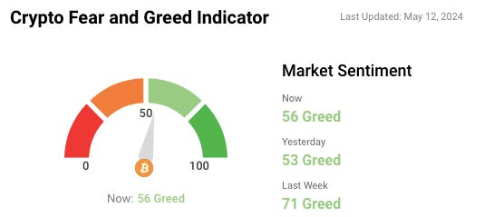 🎭 Crypto Fear and Greed Index is based on volatility, social media sentiments, surveys, market momentum, and a few other bits and pieces.