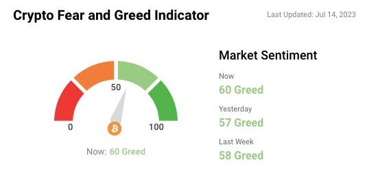 🎭 Sentiment levels are still in mild greed, overall the market seems to be expecting a bull market in the near(ish) future.