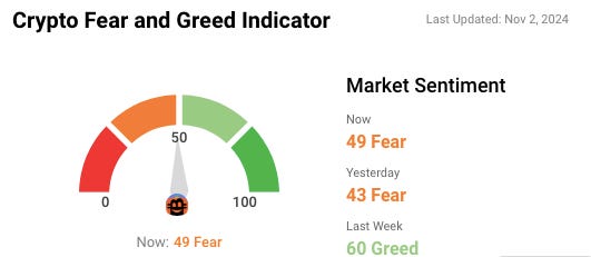 đ Crypto Fear and Greed Index is based on volatility, social media sentiments, surveys, market momentum, and a few other bits and pieces.
