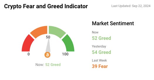 🎭 Crypto Fear and Greed Index is based on volatility, social media sentiments, surveys, market momentum, and a few other bits and pieces.