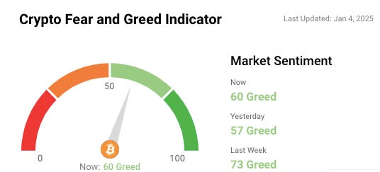 🎭 Crypto Fear and Greed Index is based on volatility, social media sentiments, surveys, market momentum, and a few other bits and pieces.