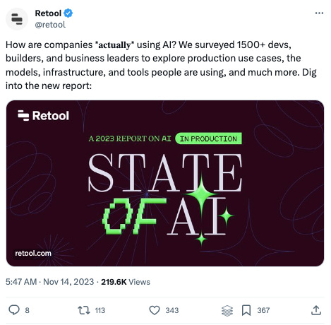 Companies pursue AI for cost savings and trendiness, yet accuracy issues and data security remain challenges. OpenAI's ChatGPT dominates natural language offerings, but off-the-shelf solutions prevail over customisation. There is still plenty of value to discover in focused use cases, 2024 is going to be exciting to watch 🍿