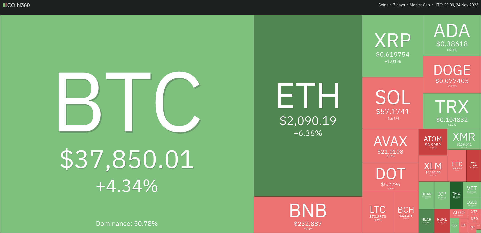 While there is much wringing of hands about Binance news (more below), the consensus seems to be that this is now a storm that has passed allowing the market to move on. 2024 has many catalysts for the start of a bull market and getting this news out of that way is a move in the right direction long term. After a bit of volatility, overall the market responded positively.