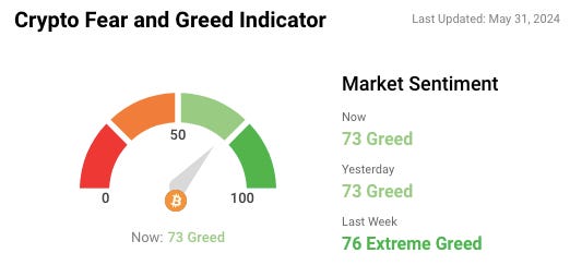 🎭 Crypto Fear and Greed Index is based on volatility, social media sentiments, surveys, market momentum, and a few other bits and pieces.