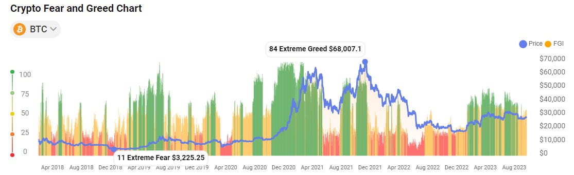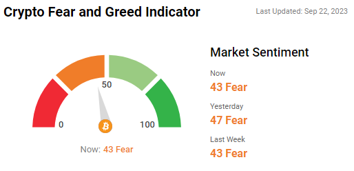 🎭 Sentiment levels are stable at the top of the Fear zone, with the historical context below
