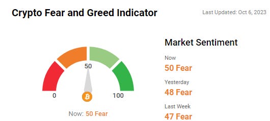 🎭 Crypto Fear and Greed Index is based on volatility, social media sentiments, surveys, market momentum, and a few other bits and pieces. Currently in the very top end of the Fear zone.