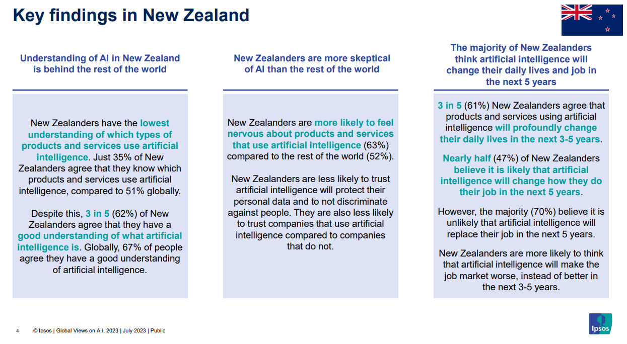 What I learned is that polling shows New Zealanders consistently report a lower understanding of and less trust in AI than the rest of the world, this is a problem. Its impact is profound, yet New Zealand's major political parties neglect to address it in their policies.