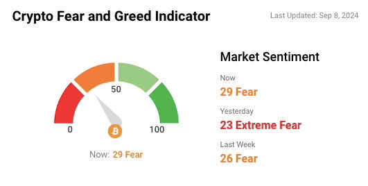 🎭 Crypto Fear and Greed Index is based on volatility, social media sentiments, surveys, market momentum, and a few other bits and pieces. Yikes!