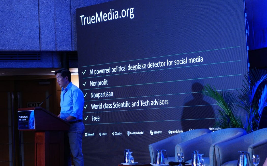 Art Min demonstrates TrueMedia's AI-powered tool for detecting AI 'deepfakes.'