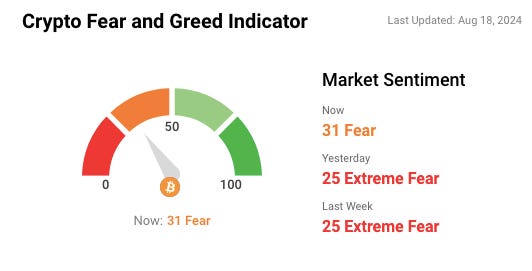 🎭 Crypto Fear and Greed Index is based on volatility, social media sentiments, surveys, market momentum, and a few other bits and pieces. It has been a rough week for sentiment!