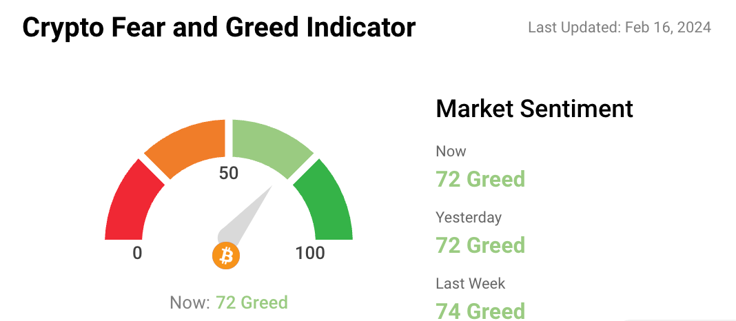 🎭 Crypto Fear and Greed Index is based on volatility, social media sentiments, surveys, market momentum, and a few other bits and pieces. Back firmly in the greed zone.