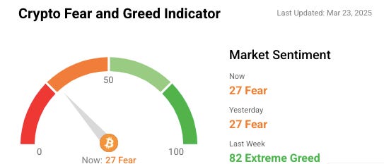 🎭 Crypto Fear and Greed Index is based on volatility, social media sentiments, surveys, market momentum, and a few other bits and pieces.