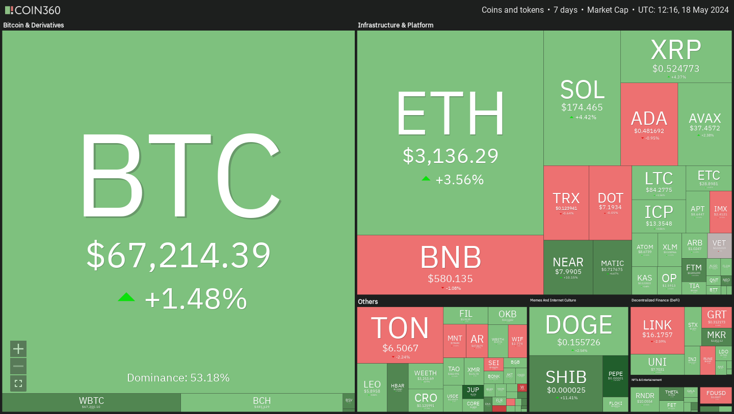 Bitcoin surged back near $66,000 on Wednesday, leading cryptocurrency prices higher. This followed the release of the US April CPI report, which showed that core inflation had moderated. Lower inflation means more likely that rates will be cut, which most think will cause “on-risk” assets like BTC to rally.