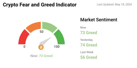 🎭 Crypto Fear and Greed Index is based on volatility, social media sentiments, surveys, market momentum, and a few other bits and pieces.