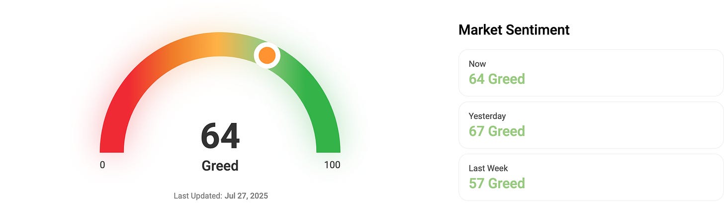 🎭 Crypto Fear and Greed Index is an insight into the underlying psychological forces that drives the market’s volatility. Sentiment reveals itself across various channels—from social media activity to Google search trends—and when analysed alongside market data, these signals provide meaningful insight into the prevailing investment climate. The Fear & Greed Index aggregates these inputs, assigning weighted value to each, and distils them into a single, unified score.